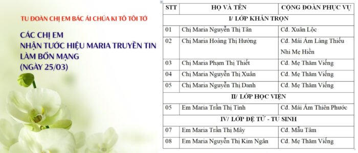 Thánh Lễ Vào Tiền Tập Viện, Tập Viện Và Khấn Lại – Tu Đoàn Chị Em Bác Ái Chúa Kitô Tôi Tớ