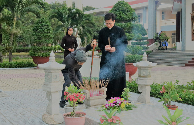 Hôm nay, ngày mùng 02 tháng 11, phụng vụ Giáo giáo muốn con cái mình làm một nghĩa cử cao đẹp thiêng liêng trong tình hiệp thông cầu nguyện cho những người đã khuất. Hòa mình trong dịp sống của việc cử hành phụng vụ này, quý Anh chị em trong Tu đoàn, cùng với Cha chánh xứ Giáo xứ Thánh Linh và bà con trong Giáo xứ đã về bên linh mộ của vị cha chung là Đức Cha Phaolô Nguyễn Thanh Hoan, để sống tâm tình biết ơn và cầu nguyện cho ngài, cho quý Anh chị em trong Tu đoàn, quý Ông bà cố, quý Thân nhân và Ân nhân đã giã biệt cuộc đời.