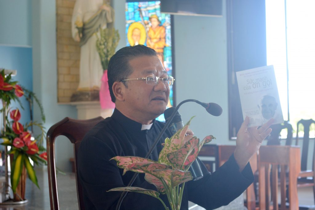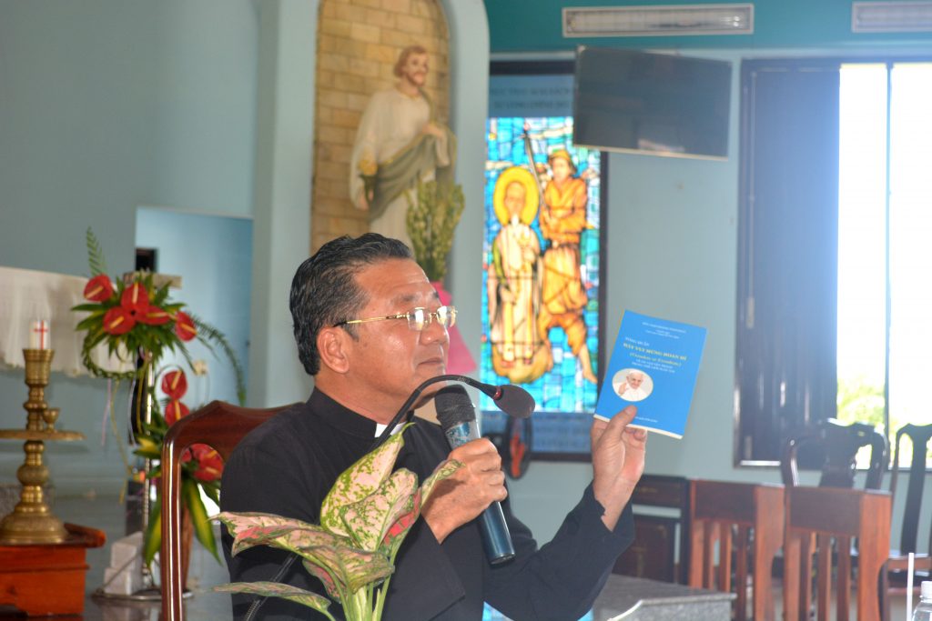 Dựa trên Tông Huấn “Niềm vui Hoan Hỉ” (Gaudete et Exsultate) của Đức Thánh Cha Phanxicô, cha Giuse Nguyễn Hữu An đã hướng dẫn cho chị em hiểu sâu hơn về ý nghĩa của Tông huấn. Khởi điểm là ơn gọi nên thánh dành cho mọi người để từ đó mỗi người, mỗi chị em nhận định được ơn gọi của mình. Ơn gọi nên thánh là cả một hành trình trong cuộc sống. Ơn gọi nên thánh trong sự vui tươi thánh thiện, lạc quan, nhiệt tình và hài hước . Những niềm vui là quà tặng và là nguồn nâng đỡ lớn lao mà Tạo Hóa ban cho con người. Niềm vui giúp chúng ta thêm yêu cuộc sống, giúp ta thăng hoa sự hiện hữu của mình, giúp ta tìm thấy ý nghĩa những gì ta đang thụ hưởng.