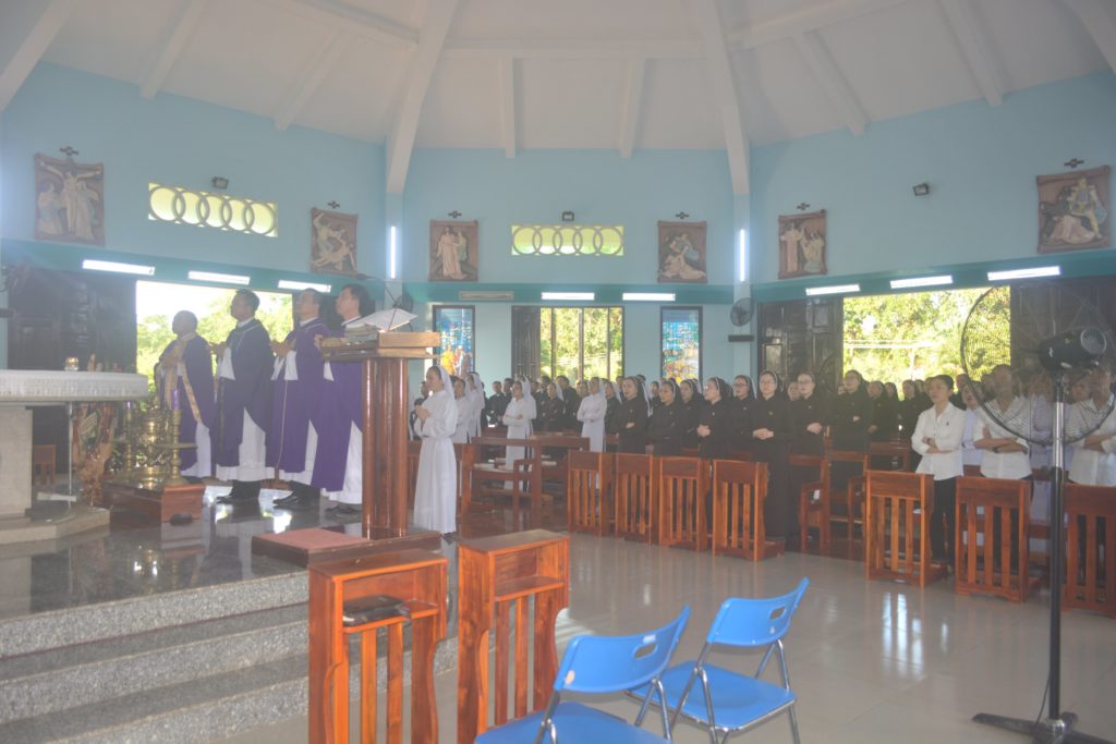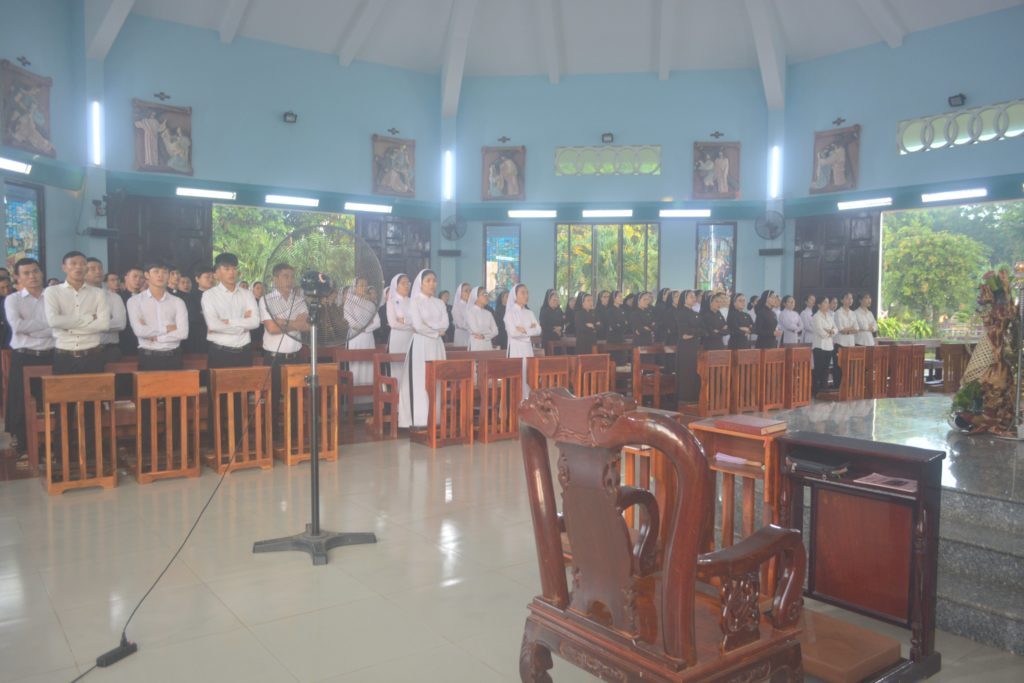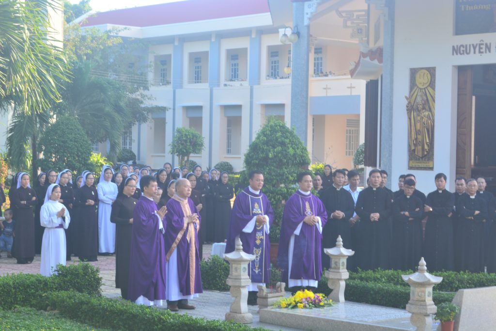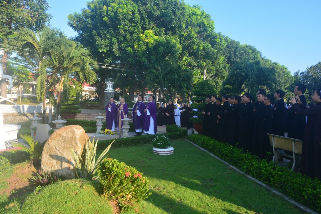 Vào lúc 9 giờ sáng nay, ngày 02/11/2019 tại Nguyện Đường Bát Phúc của Tu Đoàn Nữ Bác Ái Xã Hội- Gp. Phan Thiết. Cha Phaolô Hồ Phi Chỉnh – Bề trên Tu Đoàn Anh Em Bác Ái Xã Hội – Chủ tế Thánh lễ. Cùng đồng tế với ngài có cha Cha linh hướng Phêrô Nguyễn Chí Thiết, Cha Antôn Nguyễn Văn Thành và Cha Giuse Nguyễn Trung Hậu. Đã dâng Thánh Lễ cầu nguyện cho các Đẳng linh hồn, đặc biệt cầu nguyện cho linh hồn Đức Cha Phao-lô và các thành viên trong Tu Đoàn đã qua đời. Tham dự Thánh lễ có tất cả anh chị em trong hai Tu Đoàn Nam và Nữ.