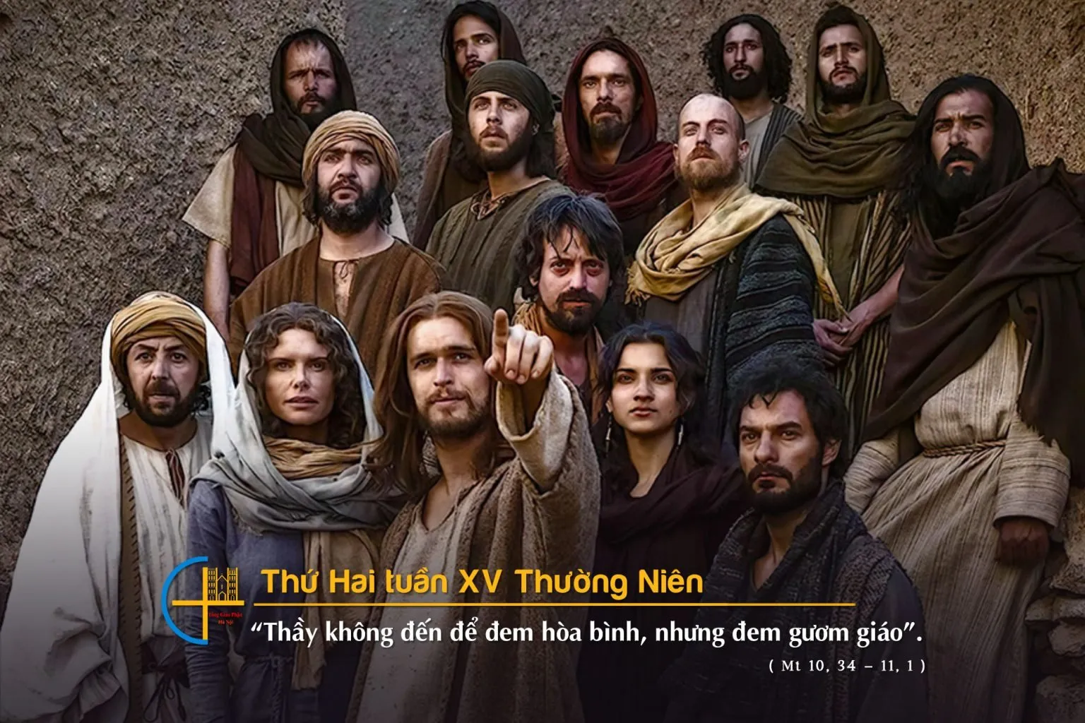 Khi ấy, Chúa Giêsu phán cùng các Tông đồ rằng: “Các con chớ tưởng rằng Thầy đến để mang hoà bình cho thế gian: Thầy không đến để đem hoà bình, nhưng đem gươm giáo. Vì chưng, Thầy đến để gây chia rẽ con trai với cha mình, con gái với mẹ mình, nàng dâu với mẹ chồng mình: và thù địch của người ta lại là chính người nhà mình. Kẻ nào yêu mến cha mẹ hơn Thầy, thì chẳng xứng đáng với Thầy. Kẻ nào yêu con trai con gái hơn Thầy, thì chẳng xứng đáng với Thầy. Kẻ nào không vác thập giá mình mà theo Thầy, thì không xứng đáng với Thầy. Kẻ nào cố tìm mạng sống mình thì sẽ mất, và kẻ nào đành mất mạng sống mình vì Thầy, thì sẽ tìm lại được nó.