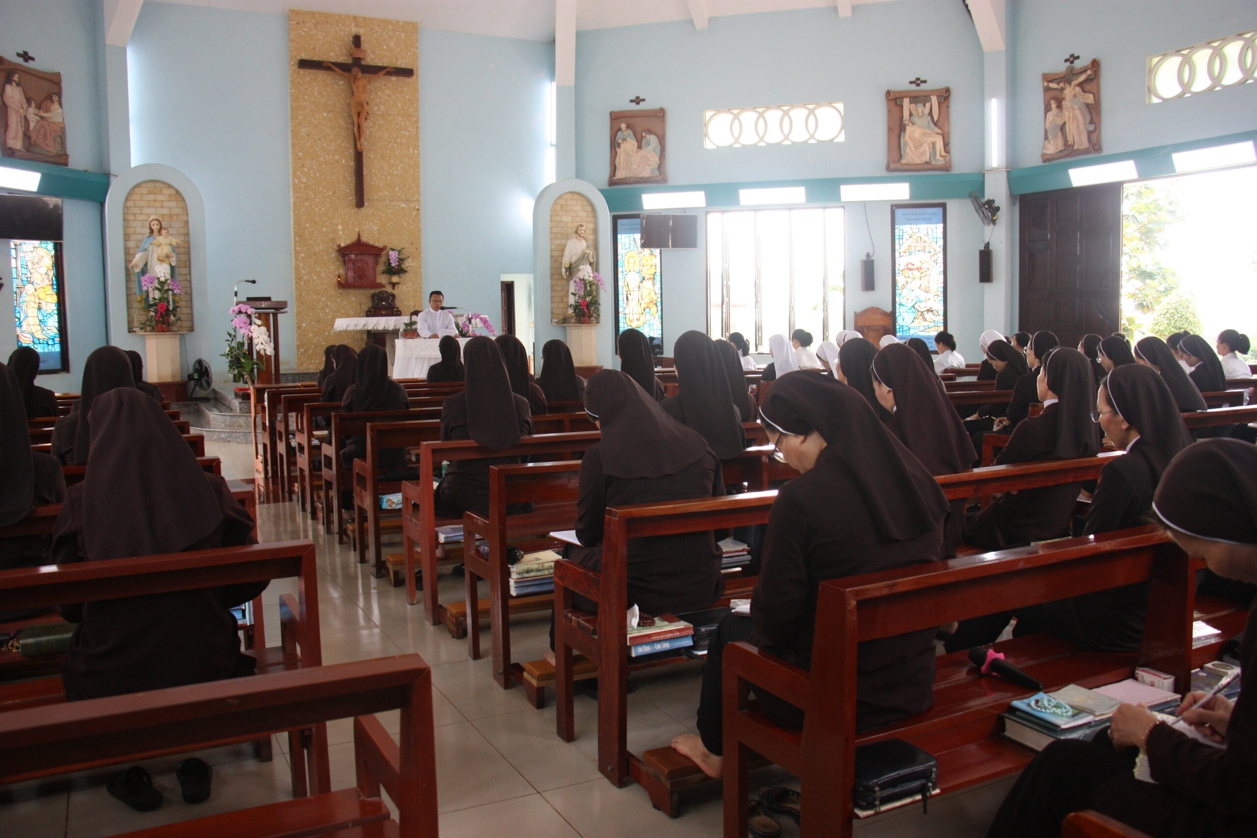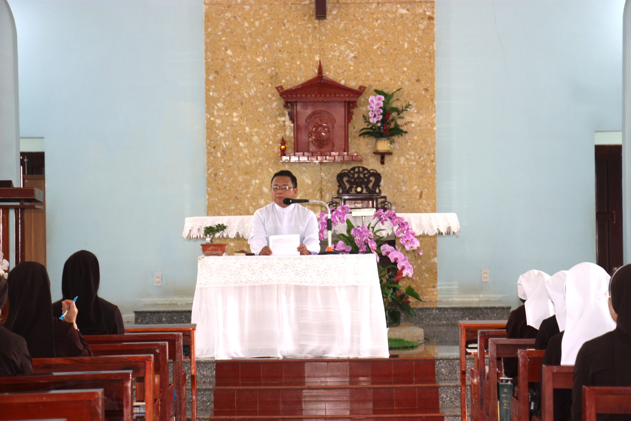 Với chủ đề “Nên Thánh trong đời tu qua việc sống tinh thần Tám Mối Phúc Thật” cha Luy Gonzaga Hoàng Luật – Đan Viện Xitô Thánh Mẫu Châu Thủy đã nhắc nhở chị em rằng: nên thánh là bổn phận của mỗi một kitô hữu, đặc biệt là những người sống đời thánh hiến. Hơn nữa, con đường nên thánh của người sống đời thánh hiến không phải là một lý thuyết xa vời, mà là việc cụ thể hóa chính hiến chương Nước Trời mà Chúa Giêsu đã công bố trên Núi Bát Phúc (Mt 5:3-10). Tám Mối Phúc không chỉ là những chuẩn mực đạo đức, mà chính là dung mạo của Chúa Kitô, là con đường thập giá và phục sinh dẫn tới sự hoàn thiện. Từ đó ngài giúp chị em tìm hiểu kỹ hơn về mối tương quan giữa Tám Mối Phúc và việc nên thánh trong đời tu qua các khía cạnh sau: