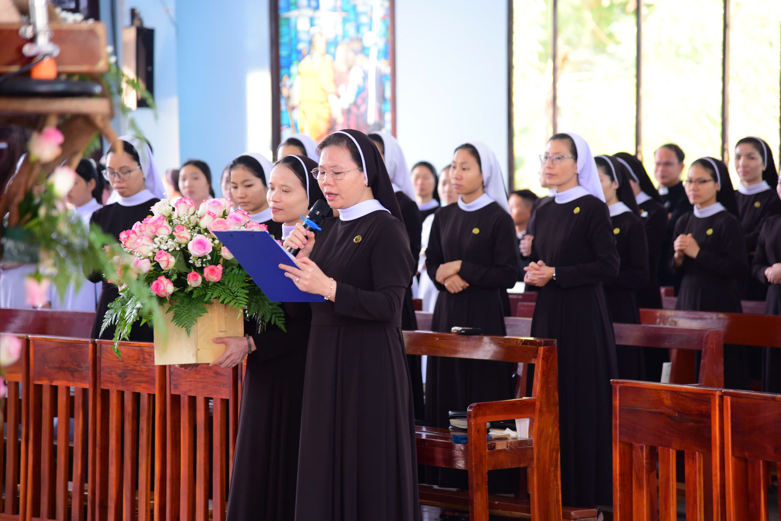 – Đức cha còn nhấn mạnh: đời sống tu trì, đời sống Kitô hữu không cần những điều lớn lao, chỉ cần hiện diện, trung thành sống yêu thương và phục vụ mỗi ngày, thì tự nó đã là ánh sáng cho người khác. Đối với Tu đoàn, châm ngôn “Yêu thương và Phục vụ” không chỉ là một khẩu hiệu, mà là một con đường sống. Trong bối cảnh Giáo Hội hôm nay đang bước đi trên con đường hiệp hành, ánh sáng ấy không chỉ chiếu ra ngoài xã hội, mà phải bắt đầu từ trong chính cộng đoàn: biết lắng nghe nhau, kiên nhẫn với nhau, nâng đỡ nhau, để cùng nhau bước đi trong niềm tin và hy vọng.