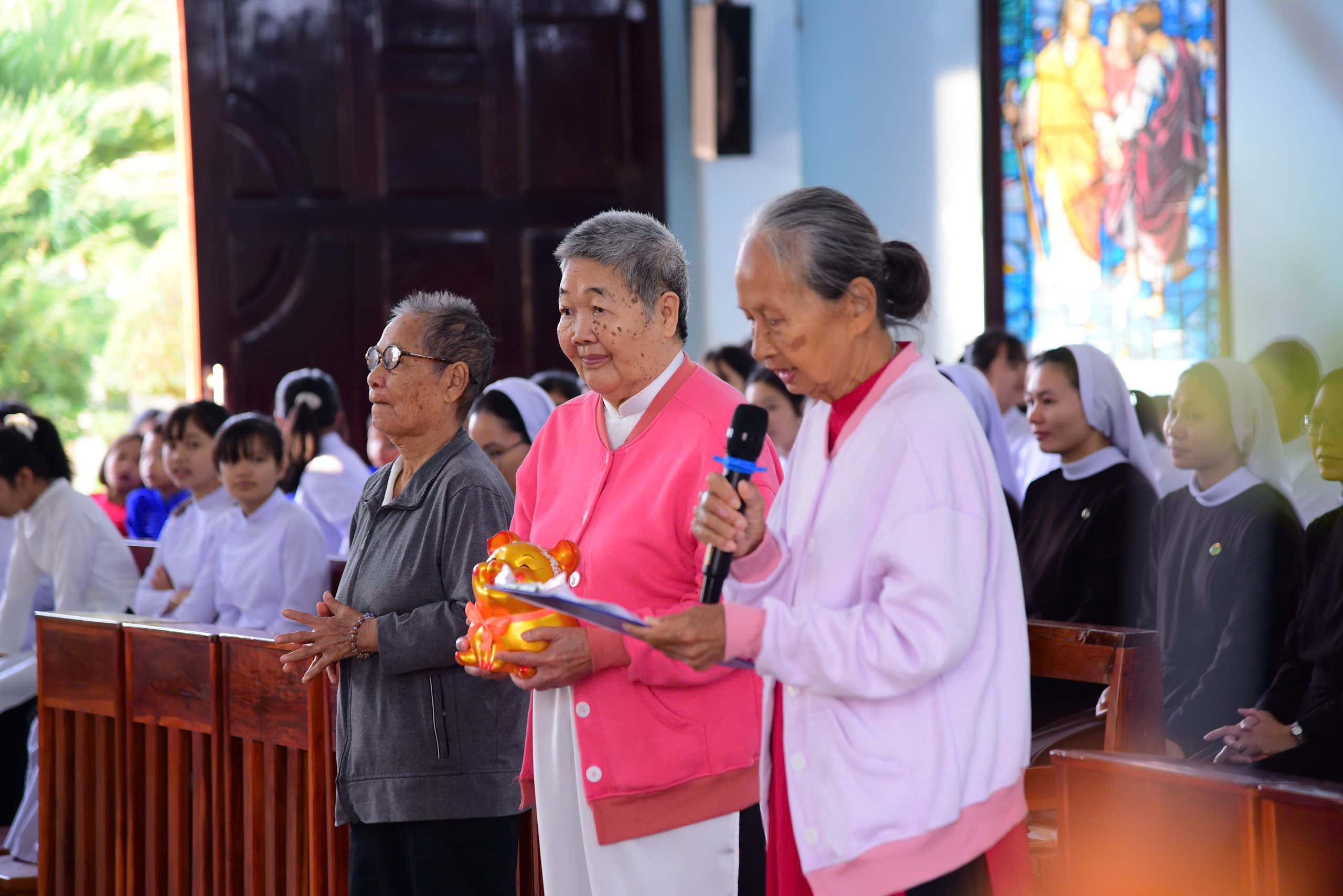 Sau bài ca kết lễ, chị Tổng Phụ Trách đại diện Tu đoàn dâng lên Đức cha, Đức ông Phêrô, quý cha và cộng đoàn lời chúc xuân mới với vần thơ dí dỏm nhưng chứa đựng cả một bầu trời yêu thương và cả những thao thức mà Đức cha cùng toàn thể Giáo phận đang ấp ủ. Nguyện dâng lên Thiên Chúa, Mẹ Maria, Thánh cả Giuse chúc lành: