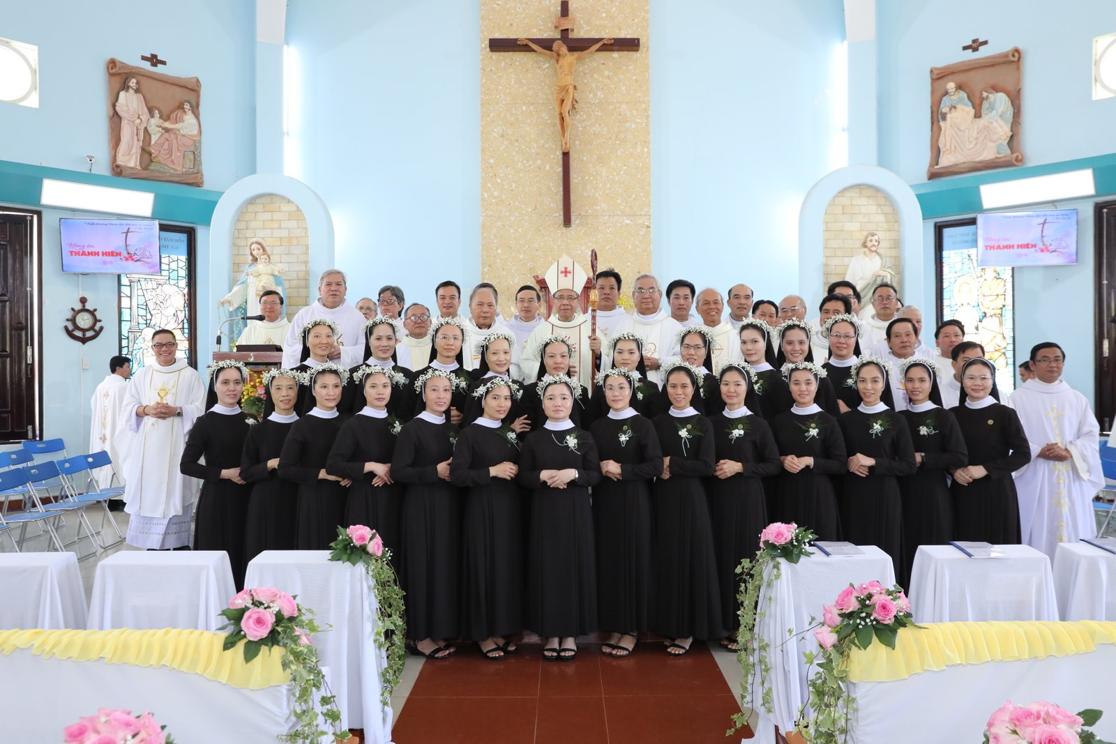 CÁC TÂN LINH MỤC GIÁO PHẬN PHAN THIẾT DÂNG LỄ TẠ ƠN TẠI TU ĐOÀN CHỊ EM BÁC ÁI CHÚA KITÔ TÔI TỚ