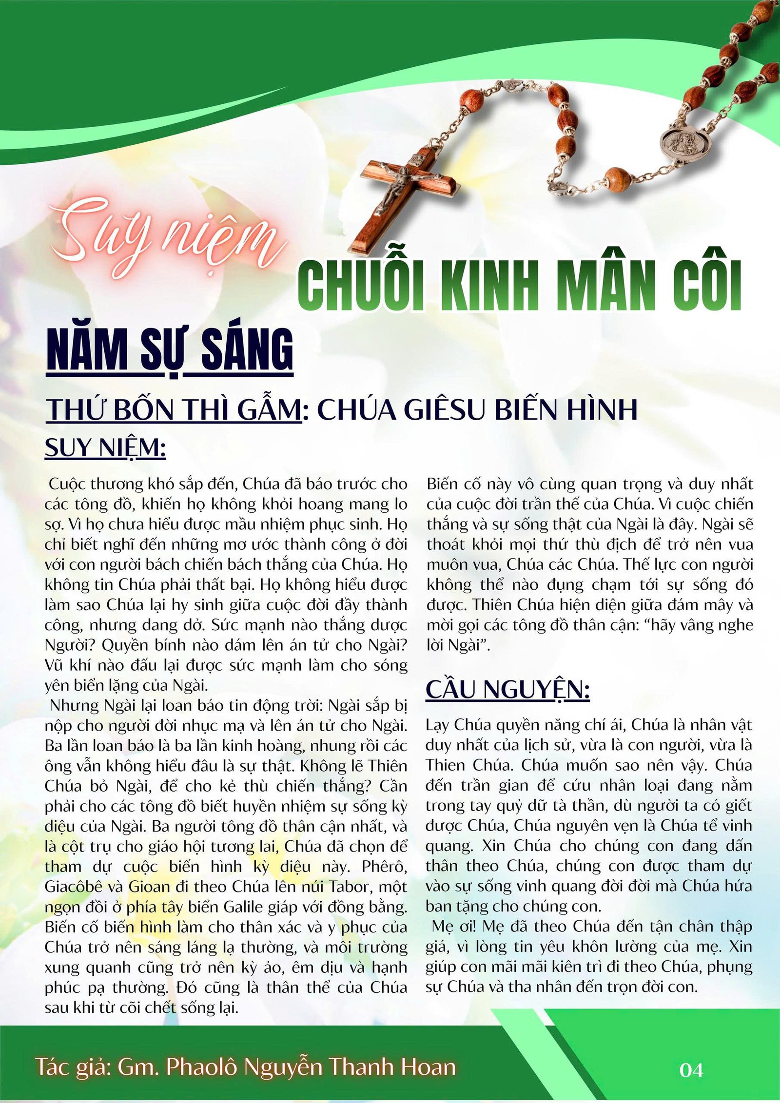 Suy Niệm Chuỗi Kinh Mân Côi Năm Sự Sáng – ĐGM Phaolo Nguyễn Thanh Hoan