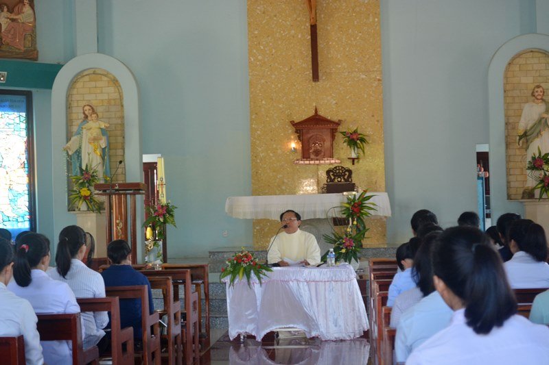 Với chủ đề “Chúa Phục Sinh và sự đổi mới” cha Gioan Trần Văn Thức đã giúp các chị em có cơ hội nhìn nhận và suy ngắm hai trạng thái của các môn đệ trước và sau khi Chúa Phục Sinh.