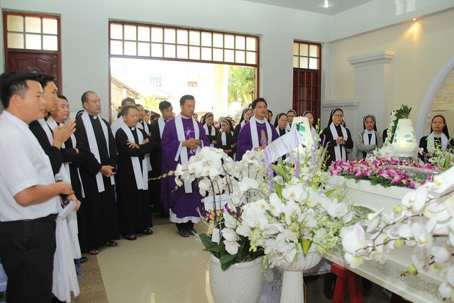 Sau thánh lễ mọi người thinh lặng viếng linh cửu Đức Cha Giuse.